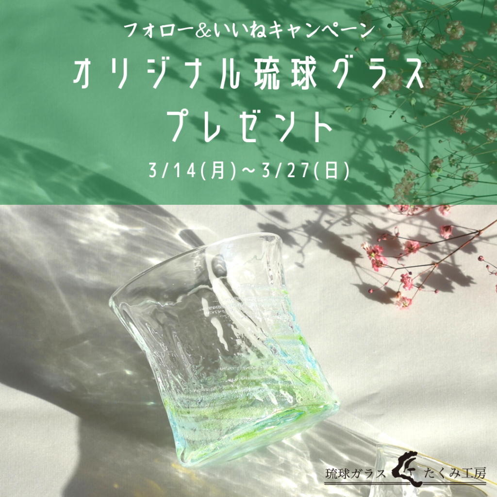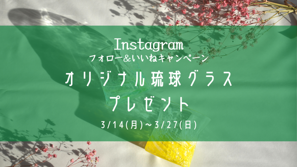 弊社商品である琉球ガラスで作ったオリジナルグラスが当たる、Instagram フォロー&いいね キャンペーンを開催しています。